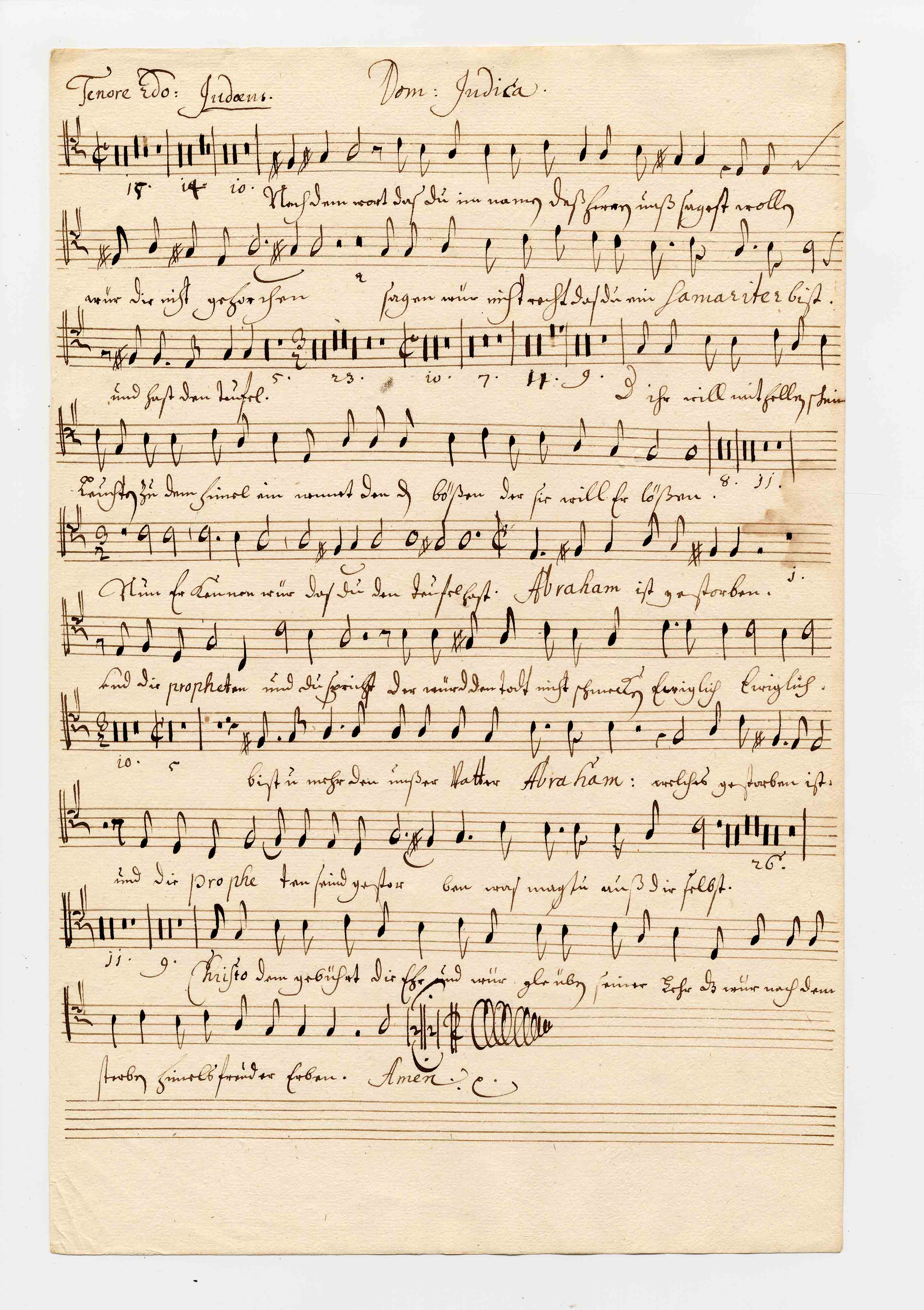 Composer:Pfleger Title:Ich bin das Licht der Welt Part:Tenore 2do: Judæus. UUB number:vmhs 073:009 File:vmhs073,009_p04_01r.jpgRight-click on image and select desired option to show image in separate window
