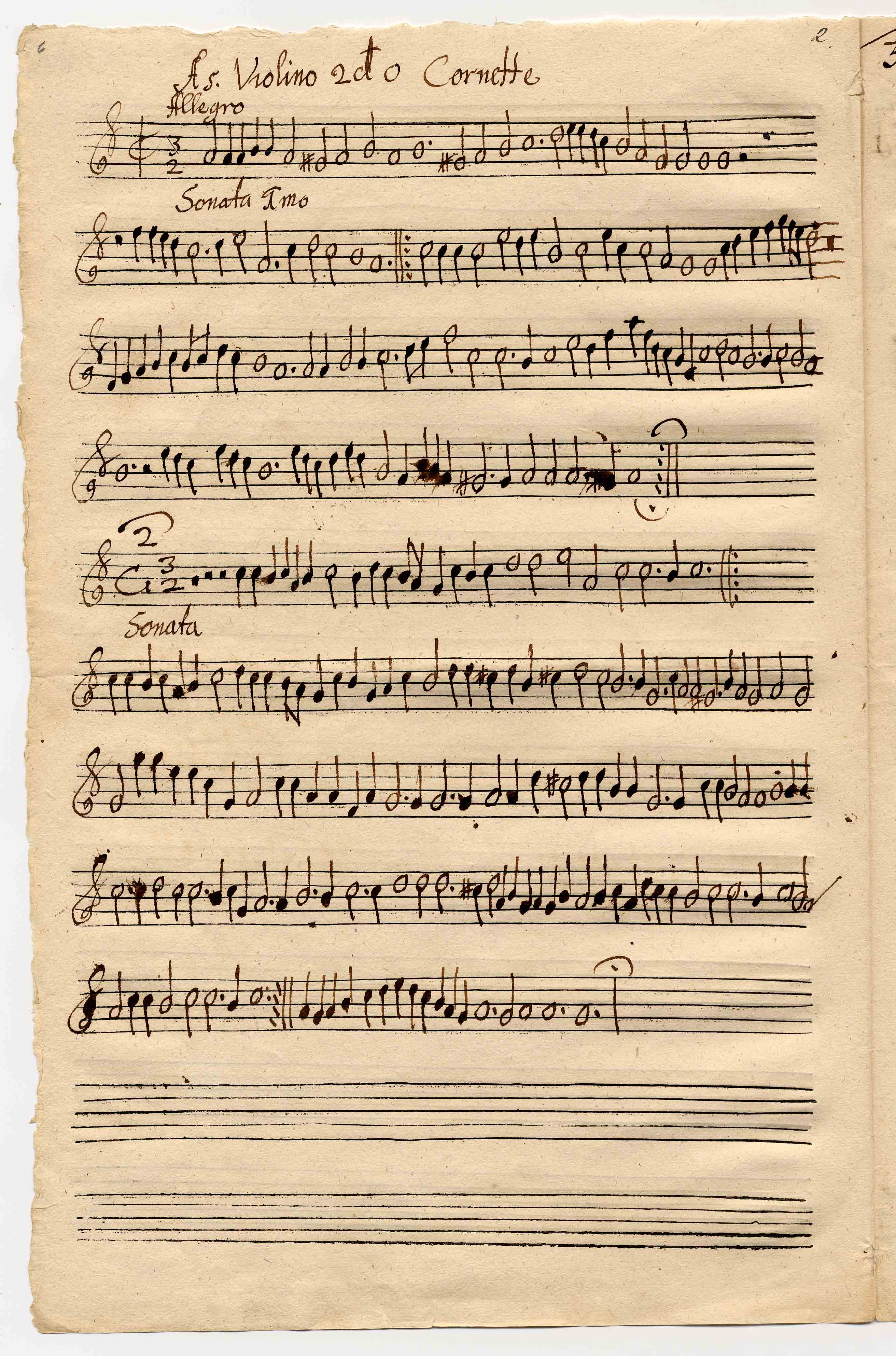 Composer:Bertali Title:Sonata a 5 Part:Violino 2d o Cornette